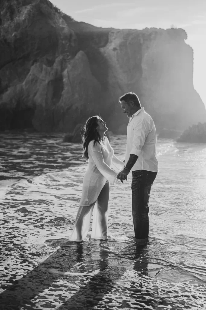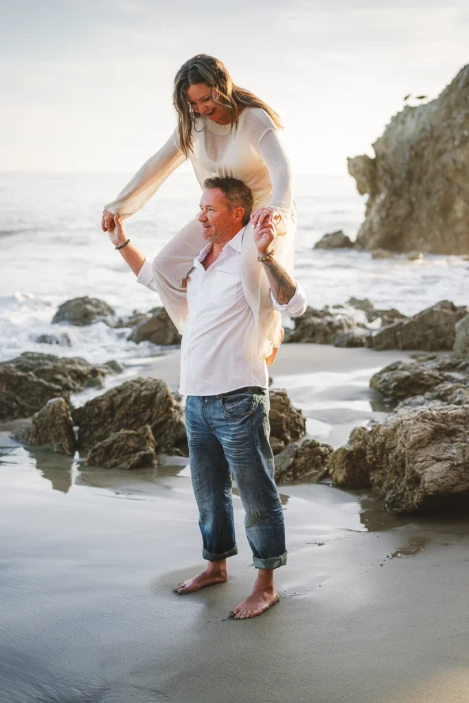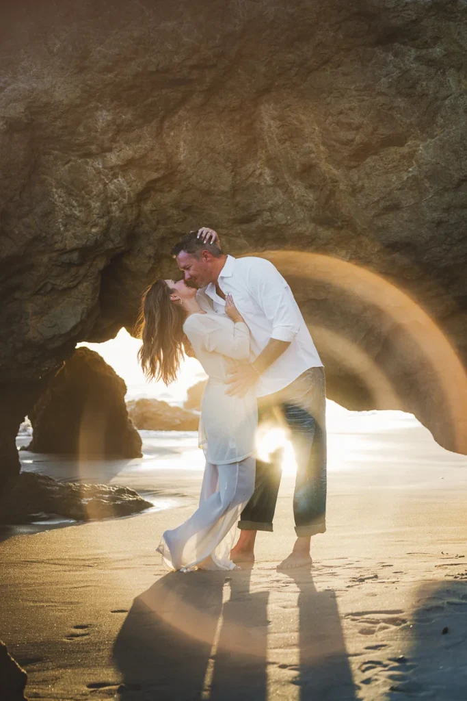 El Matador Beach is one of the most popular spots in LA for engagement photos, and it’s easy to see why. With its dramatic cliffs, sea caves, and rugged rock formations, the beach offers a stunning backdrop that feels both bold and romantic.