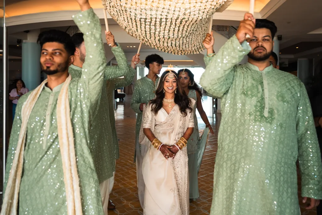 The day began with a lively baraat out front of the hotel. Family and friends danced alongside Nishal as he made his way to the ceremony. Guests cheered, the dhol kept everyone moving, and even hotel guests leaned over their balconies to watch the celebration unfold. It was the kind of joyful moment that drew everyone in.